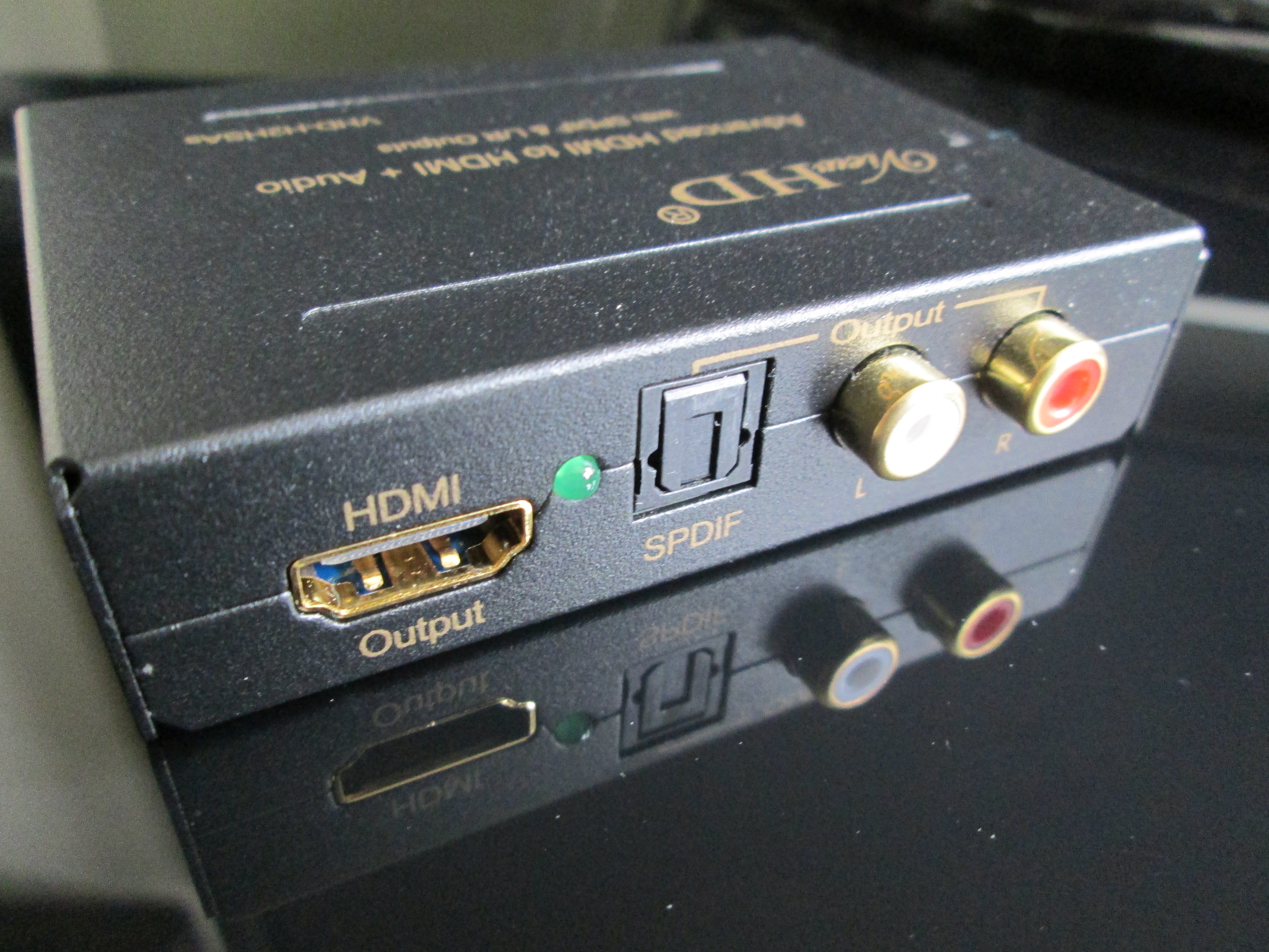 So we arrive back at my Chromecast. Through a number of unplugging and re-plugging efforts, I stumbled upon a strange solution. I acquired the ViewHD HDMI splitter, with the intention to split out audio from HDMI and feed an TOSLink optical cable into the A/V amp, but even using this required the TV to be switched on.